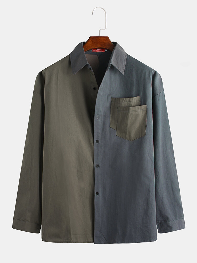 Item Type: Shirts Pattern Type: Patchwork Gender: Men Fit Type: FitStyle: Casual,Fashion,Vintage Thickness: RegularCollar: Turn Down Collar Season: Spring, AutumnDecorations:Buttons PocketMaterial: 100% CottonSleeve Length: Long SleeveColor: Green Yellow,GreyCuff Type: Shirt Sleeve Occasion: Leisure,Home,Daylife Package includes