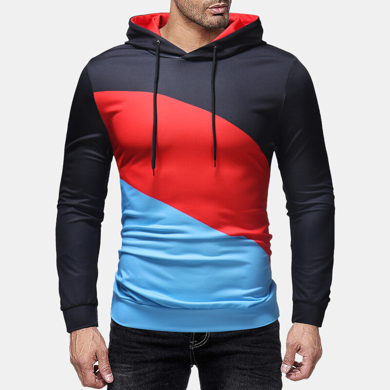Mens Patchwork Color Block Long Sleeve Hooded Sweatshirt – S Blue