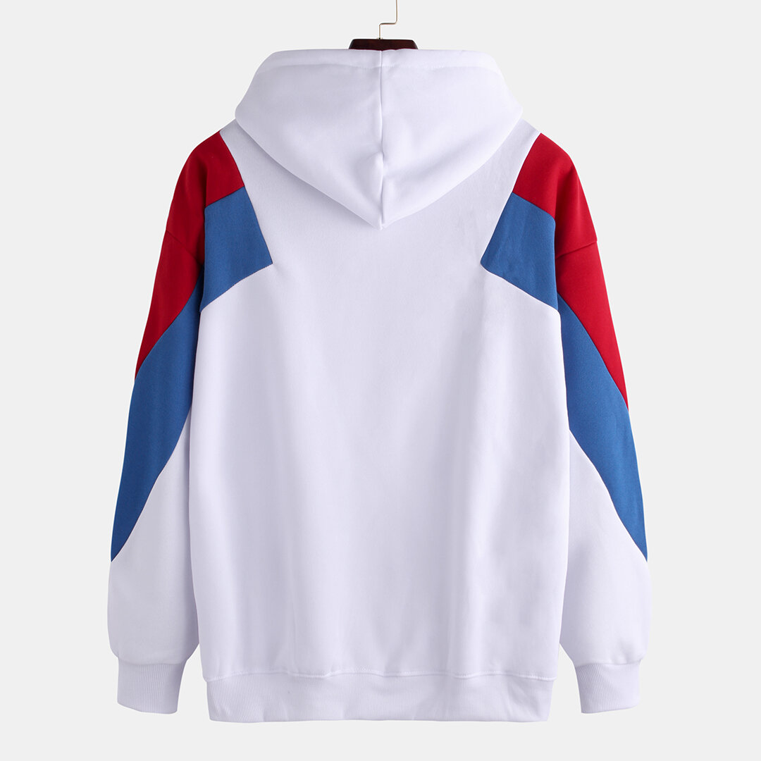 Mens Patchwork Color Printed Long Sleeve Hooded Sweatshirt – S White