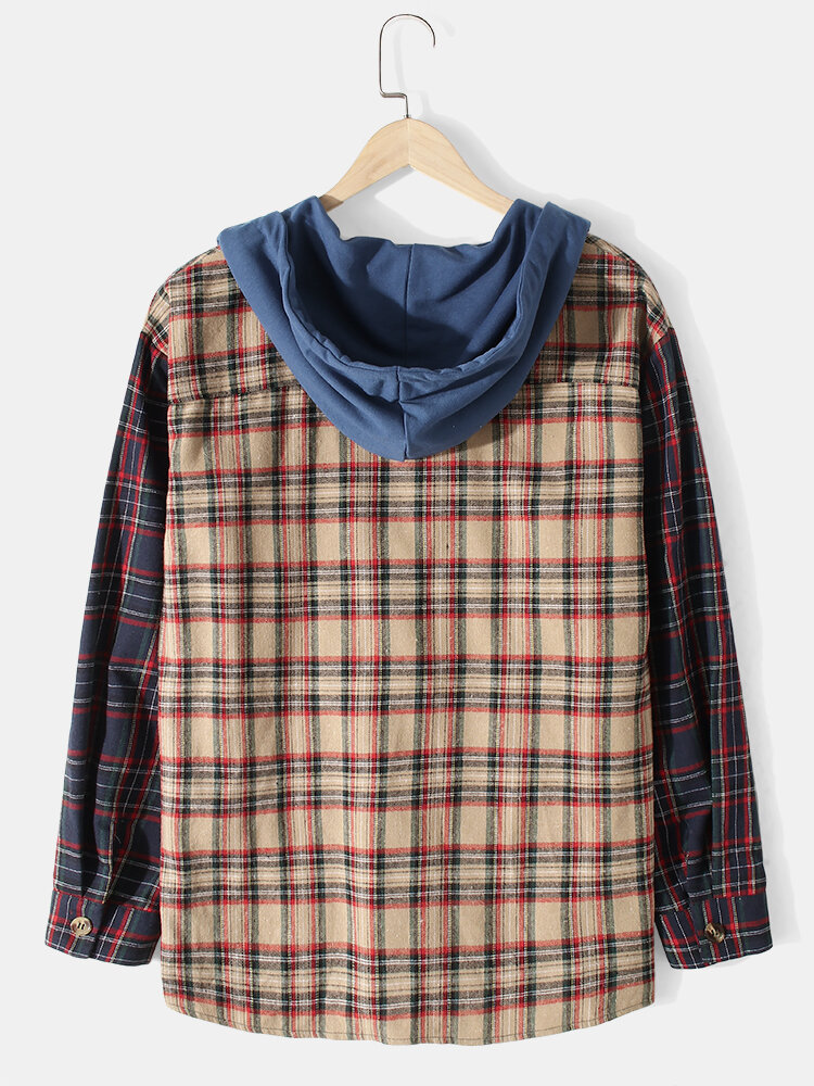 Brand:ChArmkpRDecoration:Hood,PocketFit Type:Regular FitMaterial:Cotton,PolyesterNeckline:HoodedPattern Type:Plaid,PatchworkScene:Leisure,Home,CasualSeason:Spring,AutumnSize:XXL,L,S,XL,MSleeve:Long SleeveStyle:Vintage,CasualThickness:Regular