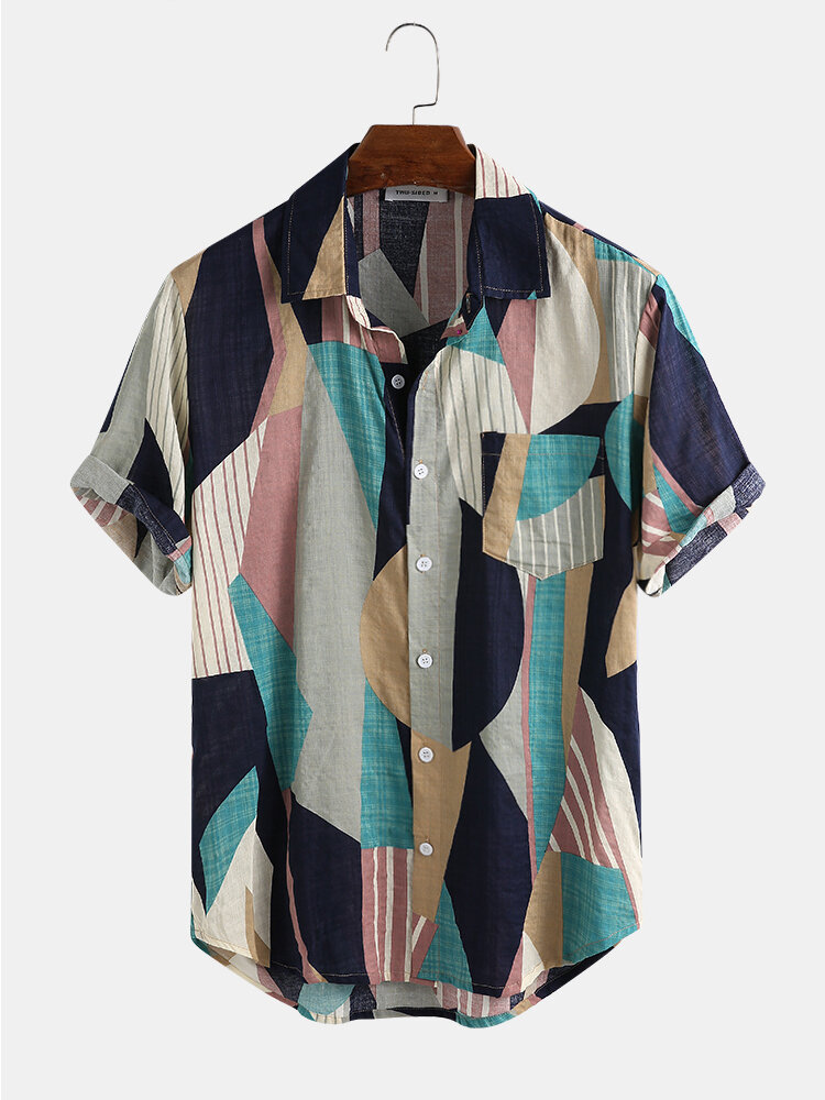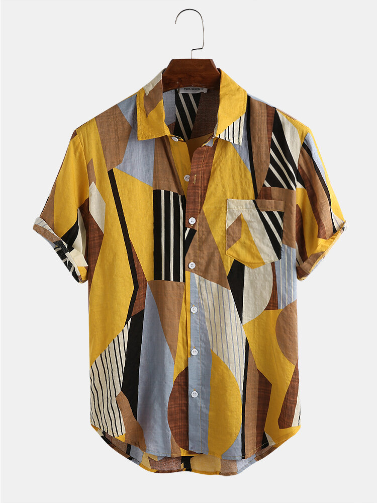 Brand:ChArmkpRDecoration:PocketFit Type:Regular FitMaterial:Rayon,CottonNeckline:LapelPattern Type:GeometricScene:Leisure,Home,CasualSeason:Spring,SummerSize:XXXL,XXL,L,XL,MSleeve:Short SleeveStyle:Vintage,CasualThickness:Regular