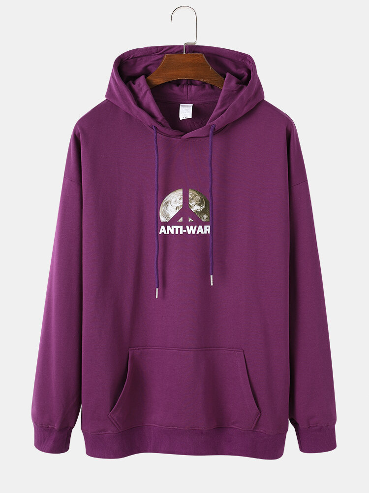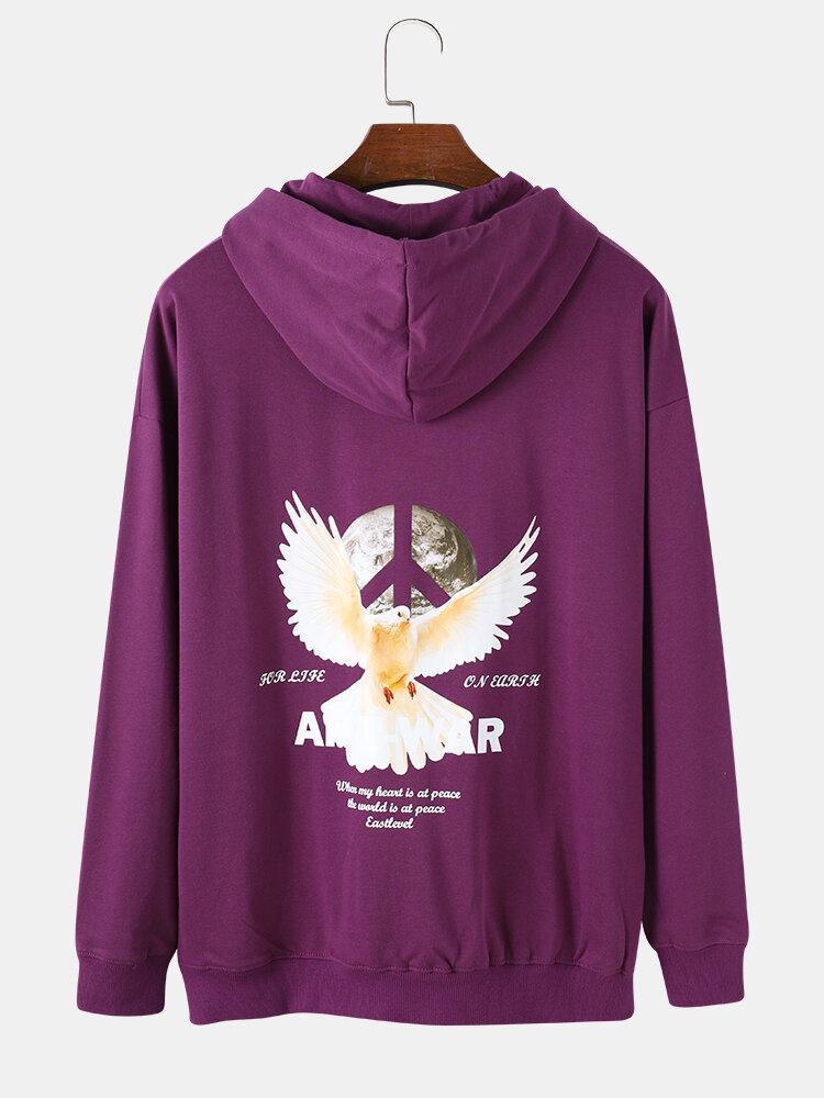 Mens Peace Dove Anti-War Back Print Drawstring Casual Hoodies – White 2XL