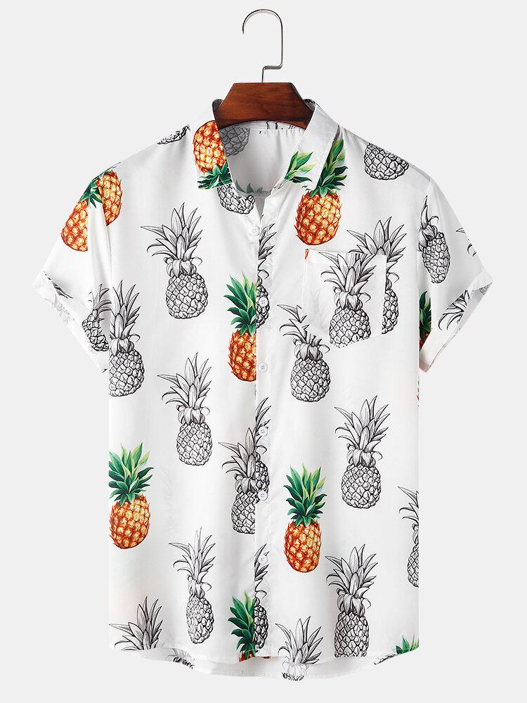 Description:Decoration:Pocket,ButtonFit Type:Regular FitMaterial:Polyester,CottonNeckline:LapelPattern Type:Fruit&VegetableScene:Leisure,CasualSeason:Spring,SummerSize:L,S,XL,MSleeve:Short SleeveStyle:Casual