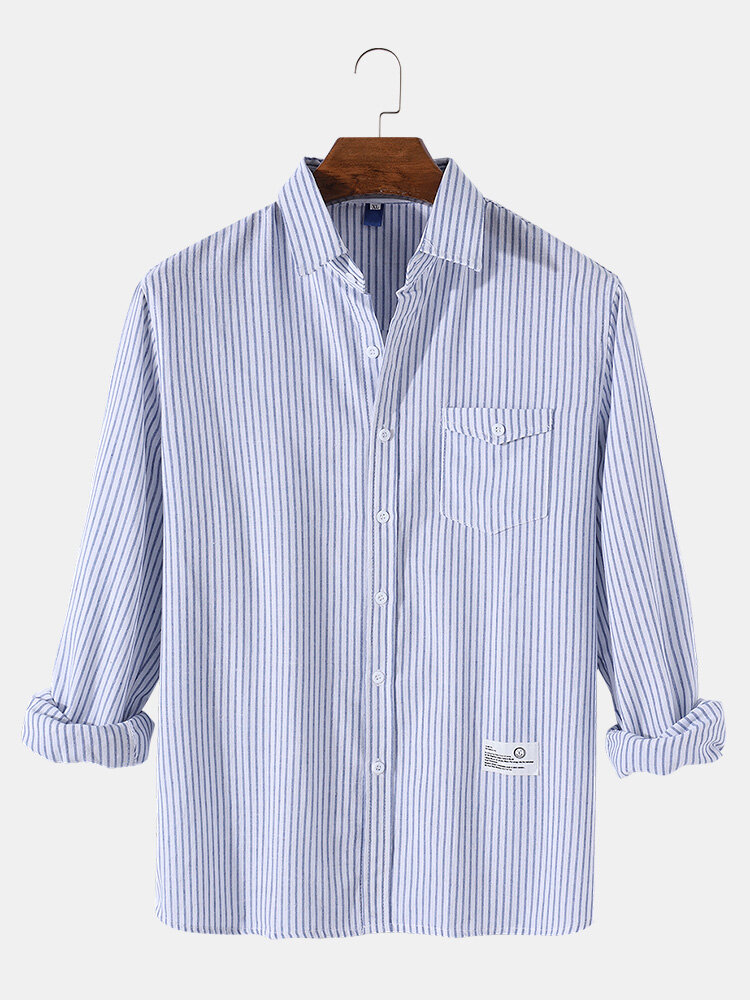 Decoration:Pocket,ButtonFit Type:Regular FitMaterial:CottonNeckline:LapelPattern Type:StripedScene:Leisure,CasualSeason:Spring,AutumnSize:XXXL,XXL,L,XL,MSleeve:Long SleeveStyle:CasualThickness:Regular