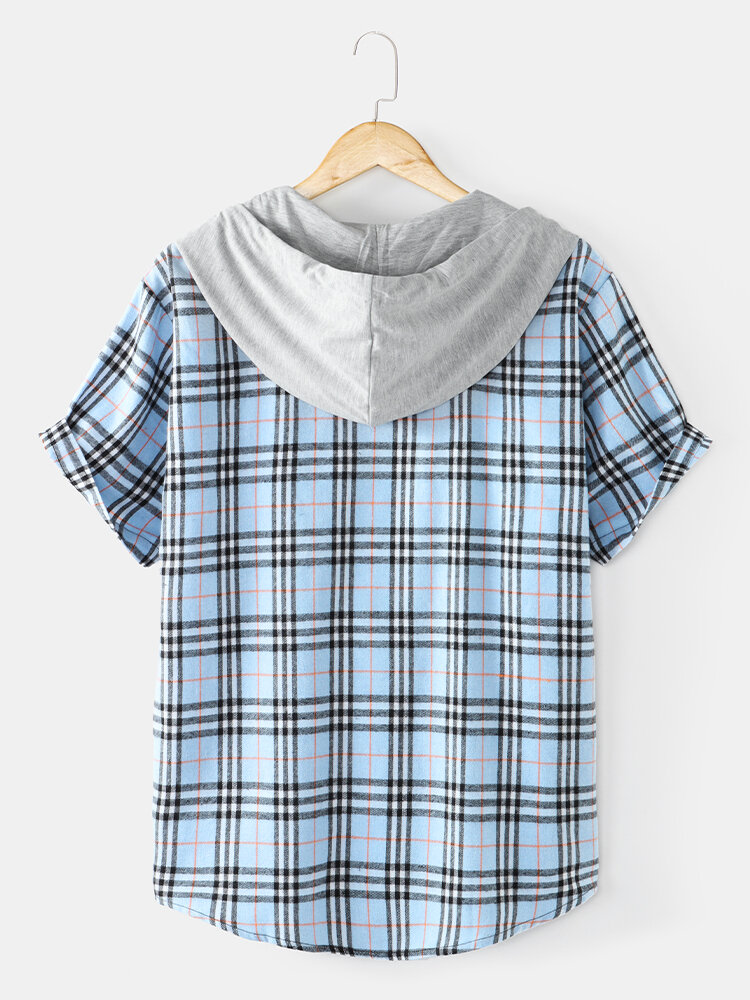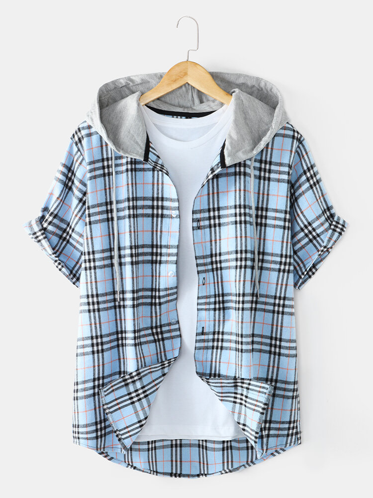 Description:Decoration:Hood,ButtonFit Type:Regular FitMaterial:PolyesterNeckline:HoodedPattern Type:PlaidScene:Leisure,CasualSeason:Spring,SummerSize:XXL,L,S,XL,MSleeve:Short SleeveStyle:CasualThickness:Regular