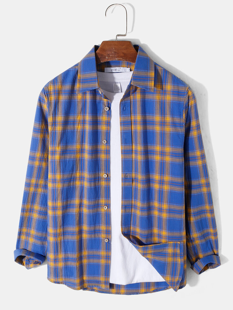 Description:Fit Type:Regular FitMaterial:CottonNeckline:LapelPattern Type:PlaidScene:Leisure,CasualSeason:Spring,AutumnSize:L,S,MSleeve:Long SleeveStyle:Casual,Hawaii StyleThickness:Regular