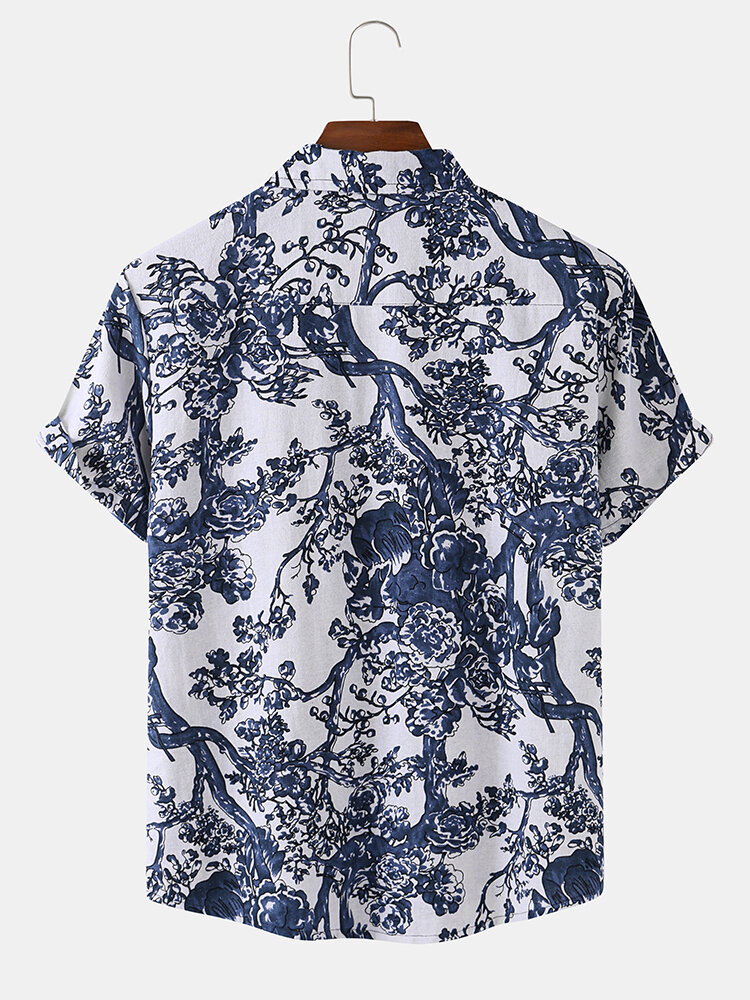 Description:Fit Type:Regular FitMaterial:CottonNeckline:LapelPattern Type:PlantsScene:Leisure,Home,Beach,CasualSeason:SummerSize,L,S,XL,M