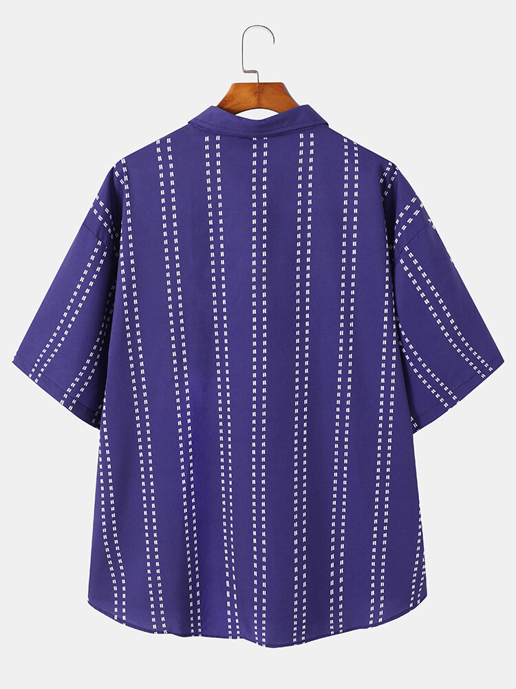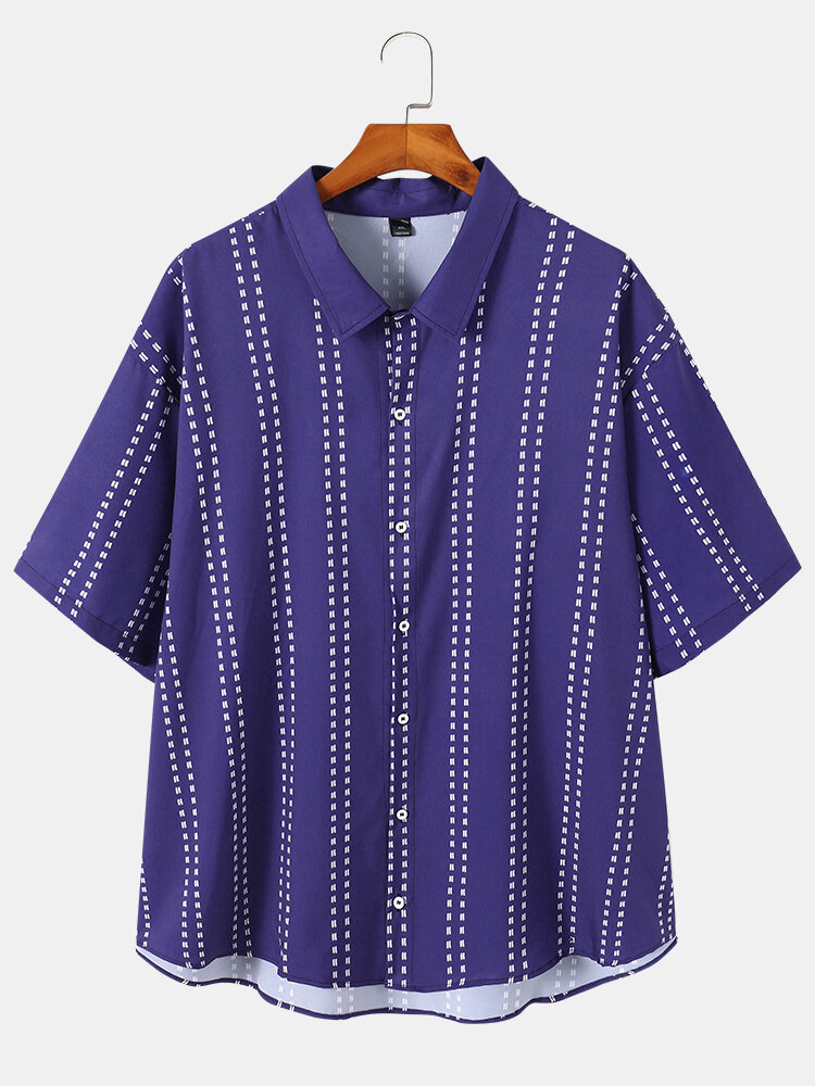 Mens Plus Size Lines Striped Loose Button Up Shirts – Blue 4XL