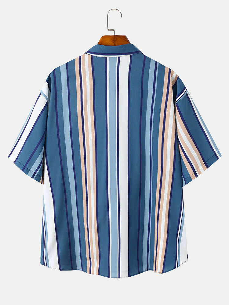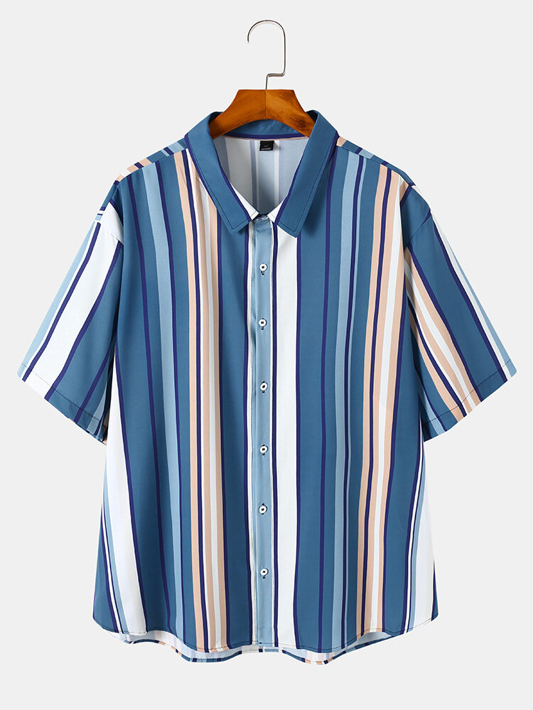 Mens Plus Size Striped Casual Fashion Button Up Shirts – Blue 3XL