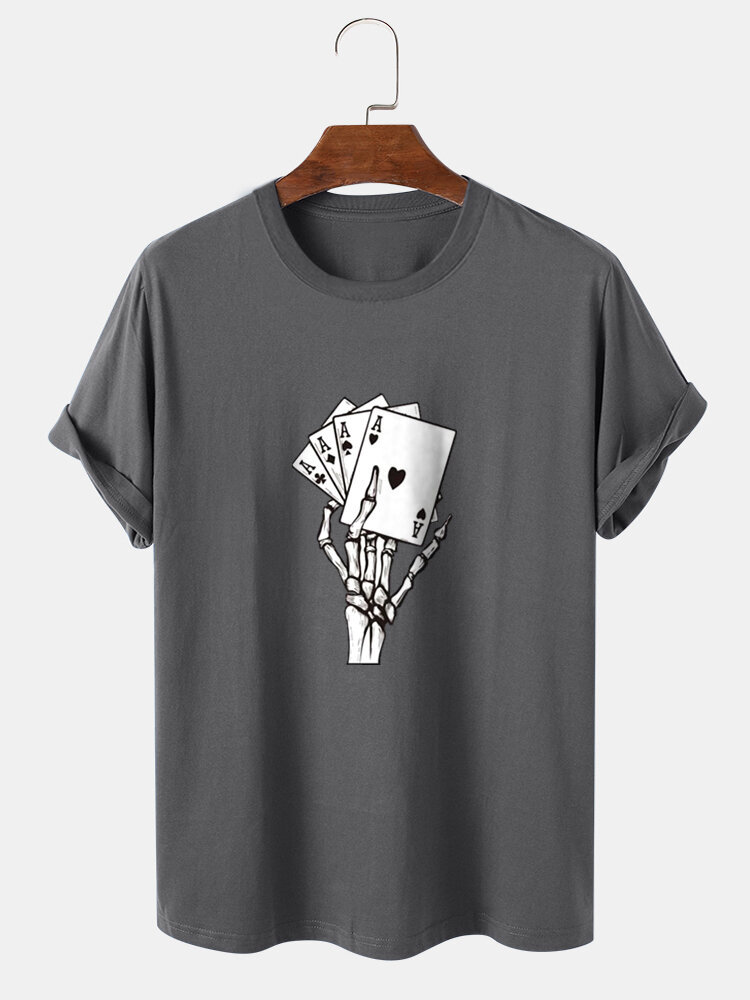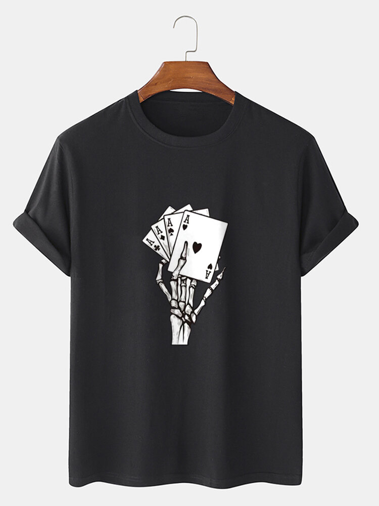Mens Poker Skeleton Hand Graphics Street 100% Cotton Short Sleeve T-Shirt – Black M
