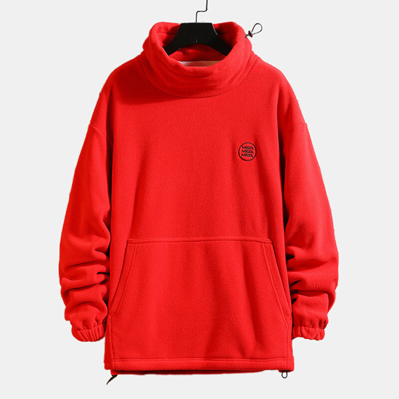 Mens Polar Fleece Casual High Collar Thick Warm Solid Color Sweatshirt – XL Khaki