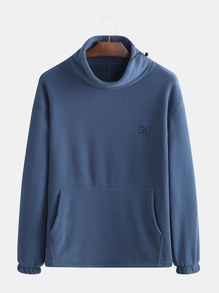 Mens Polar Fleece Casual High Collar Thick Warm Solid Color Sweatshirt – XL Khaki
