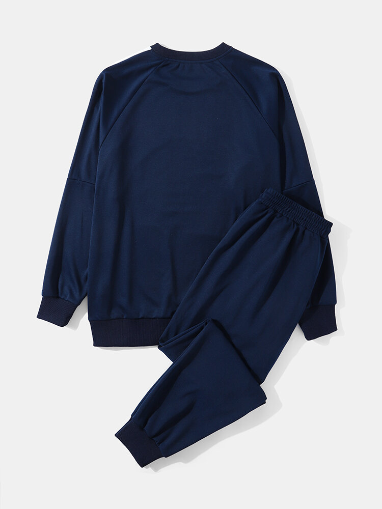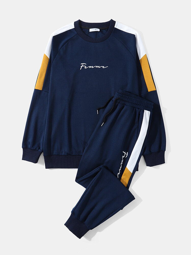 Mens Preppy Sports Splicing Letter EmBroidery Navy Suits – Navy S