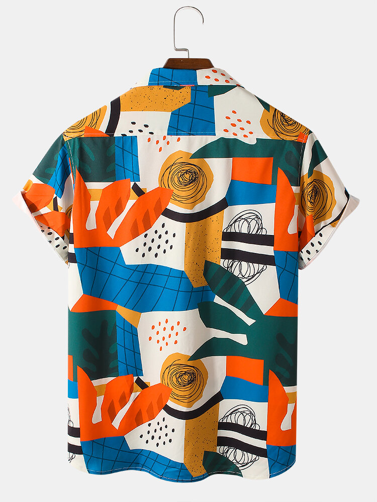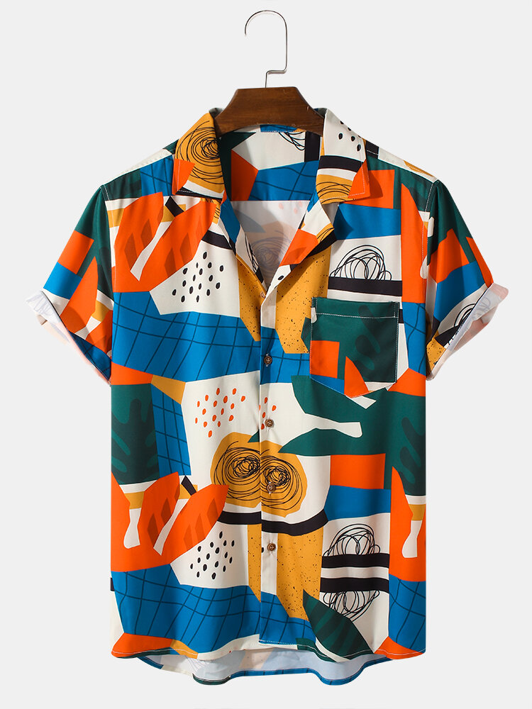 Brand:ChArmkpRDecoration:PatternFit Type:Regular FitMaterial:PolyesterNeckline:Revere CollarPattern Type:PatchworkScene:Leisure,Home,CasualSeason:SummerSize:M,XXL,S,XL,LSleeve:Short SleeveStyle:Casual,Hawaii StyleThickness:Regular