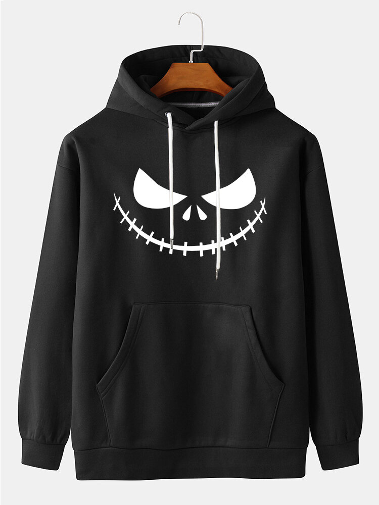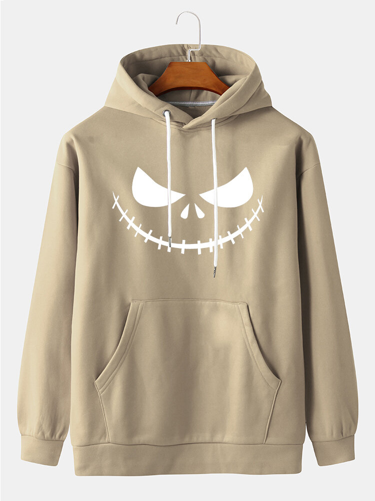 Mens Print Kangaroo Pocket Long Sleeve Casual Drawstring Hoodies – Khaki M
