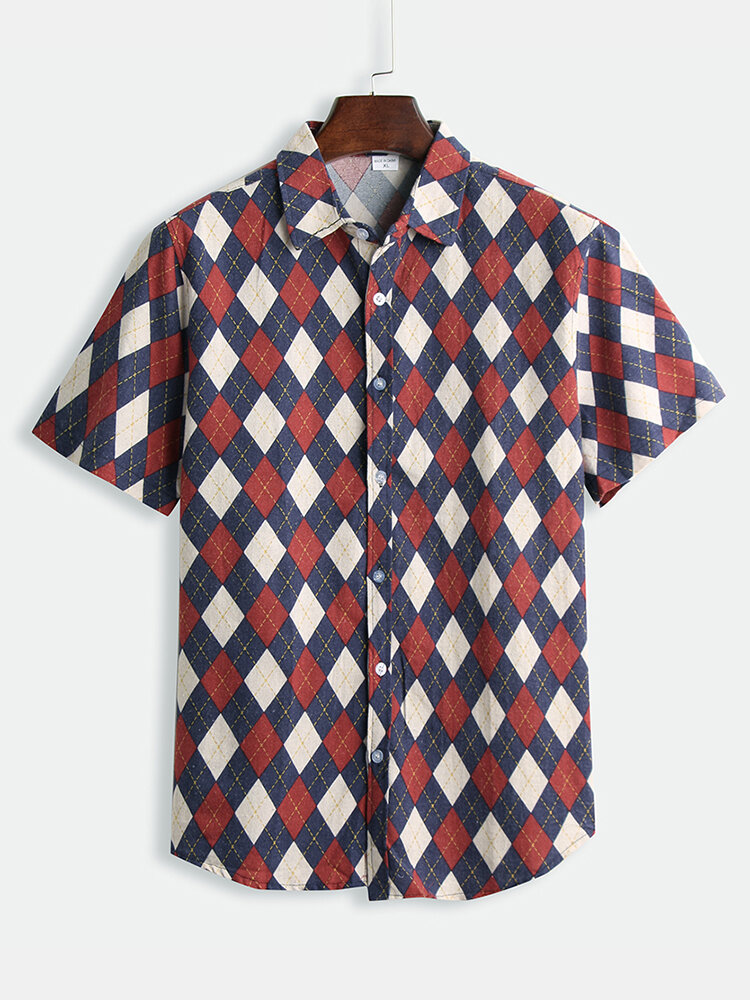 Mens Prismatic Printed Loose Casual Summer Hawaiian Shirts – M As Picture