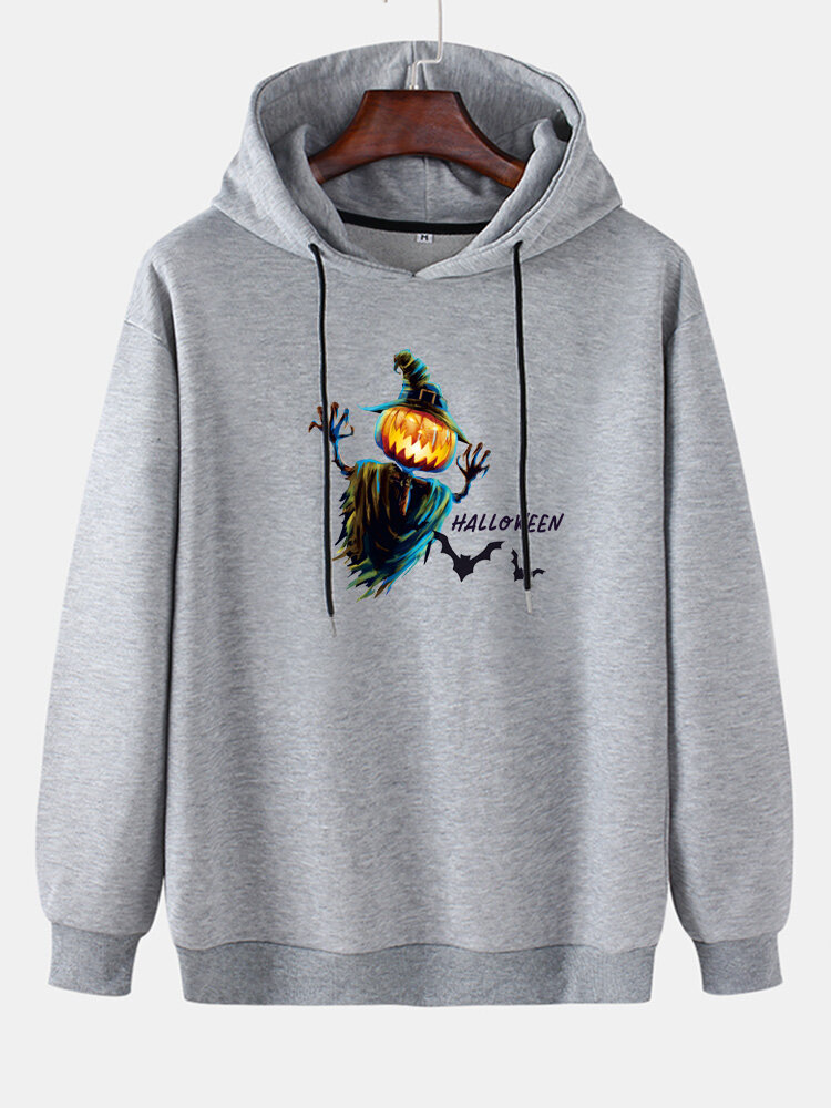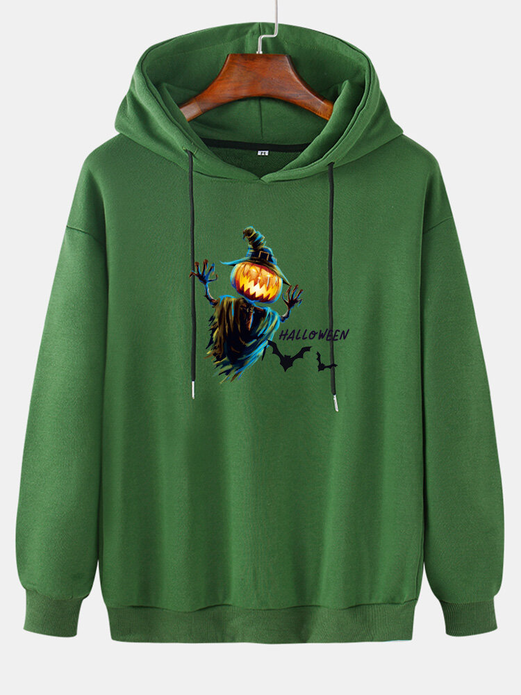 Mens Pumpkin Scarecrow Print Drop Shoulder Cotton Drawstring Hoodies – Green 2XL