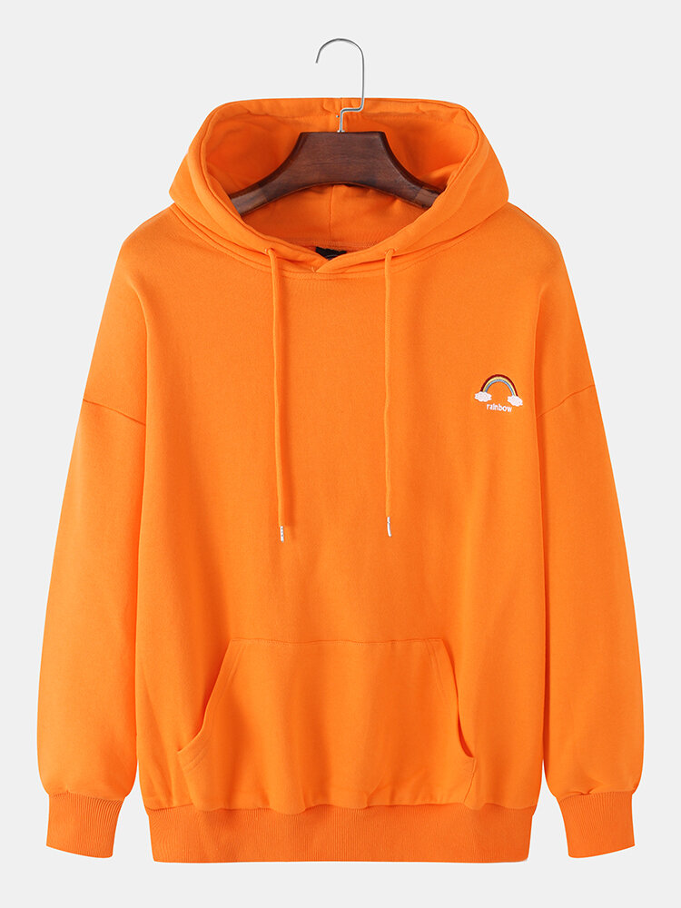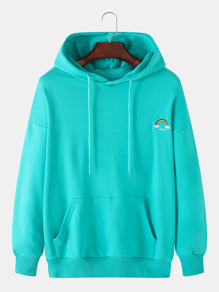 Mens Rainbow Embroidery Drop Shoulder Hoodies With Kangaroo Pocket – 2XL Light Blue