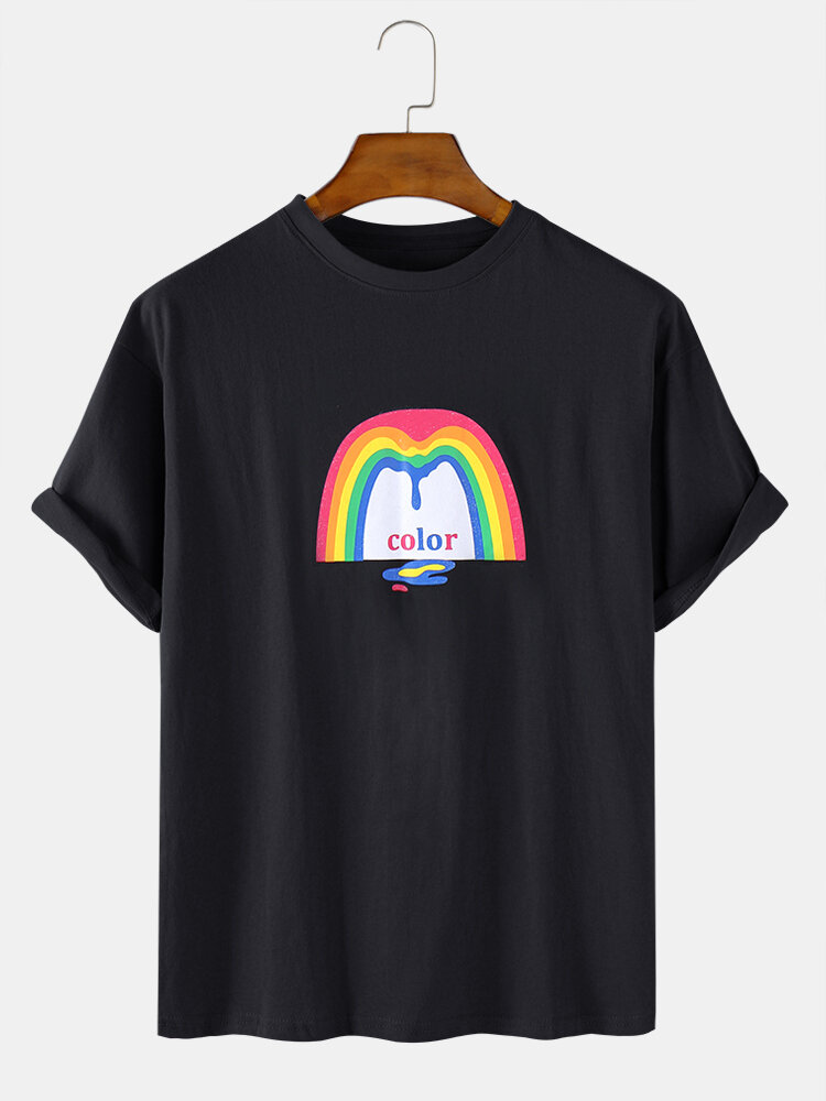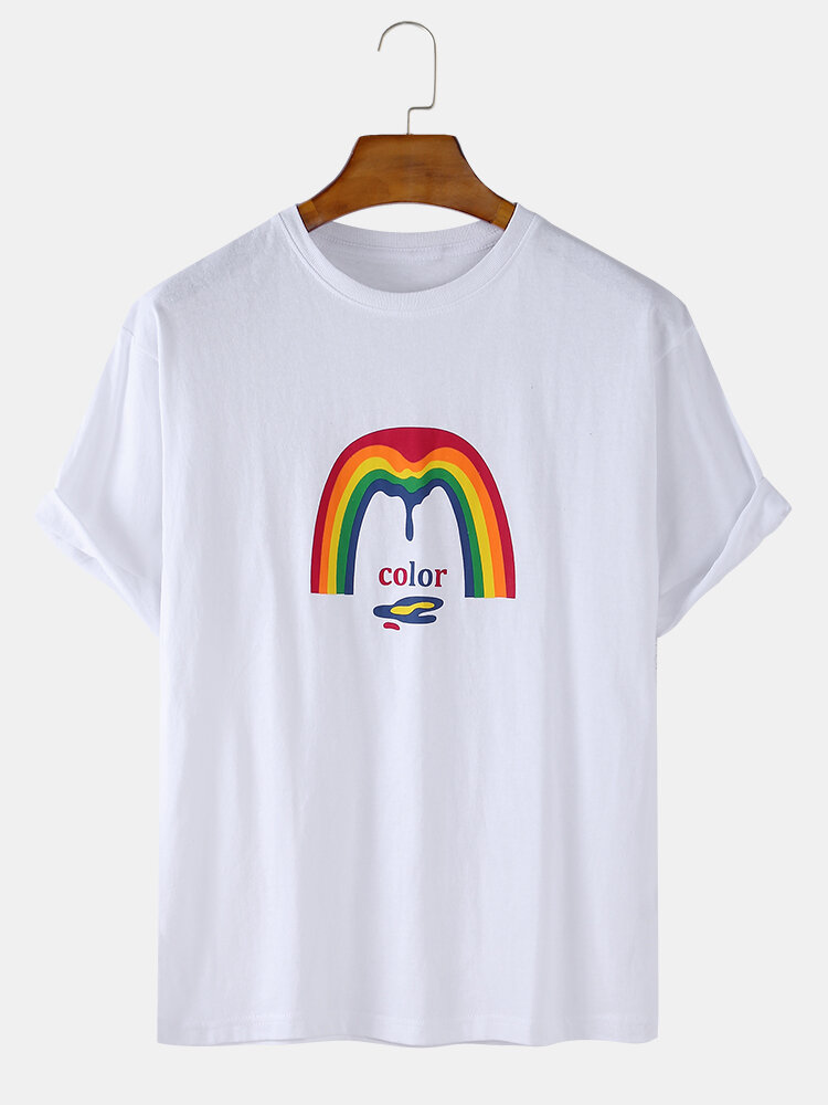 Mens Rainbow Graphic Print Cotton Round Neck Casual Short Sleeve T-Shirt – Green S