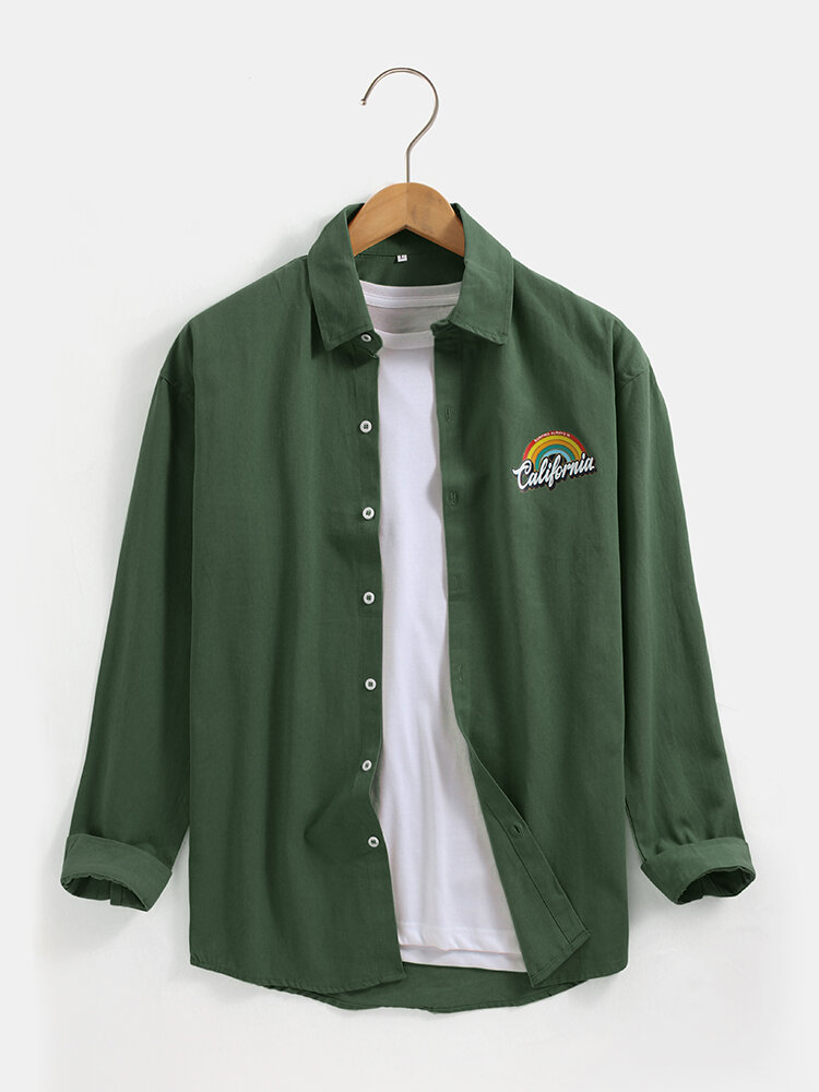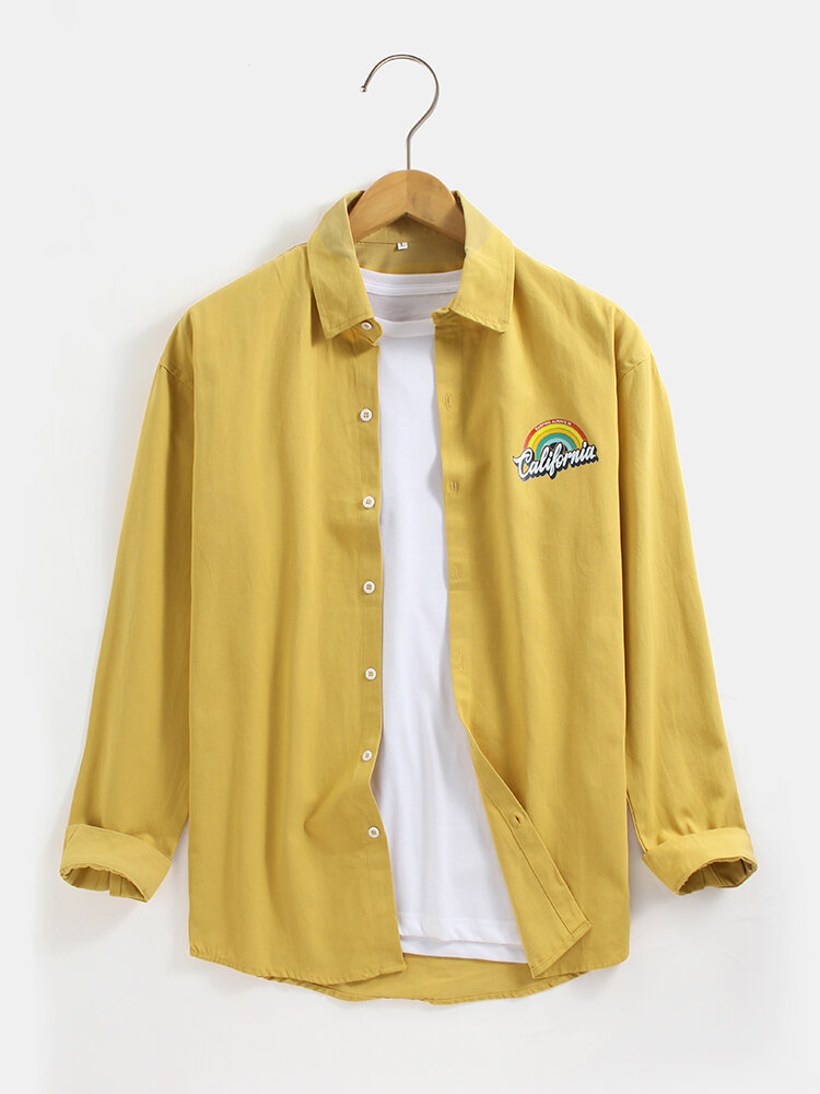 Mens Rainbow Print Button Up Lapel Long Sleeve Simple Shirts – Khaki XL