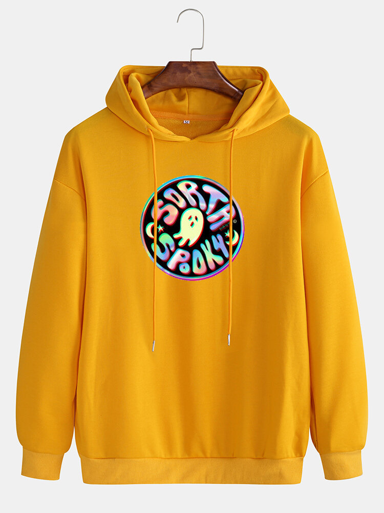 Mens Reflective Ghost Print Street Style Pullover Drawstring Hoodie – White M