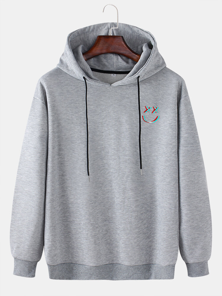 Mens Reflective Smile Face Print Cotton Casual Drawstring Pullover Hoodies – Pink S
