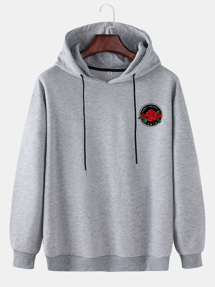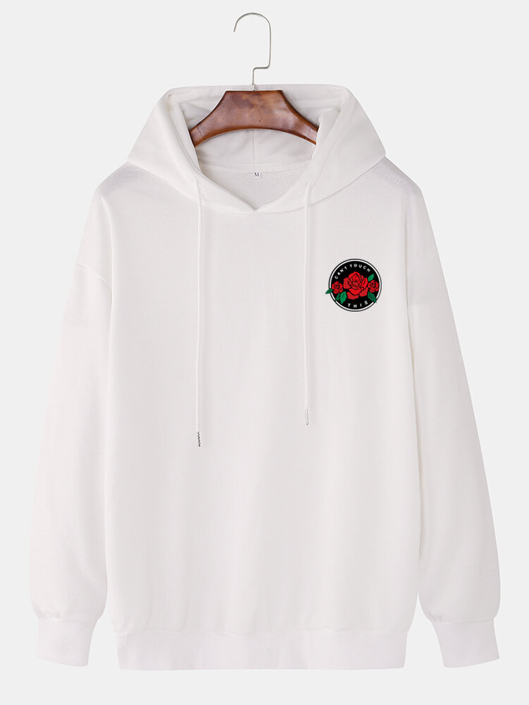 Mens Rose Chest Print Drop Shoulder Long Sleeve Simple Hoodies – White L