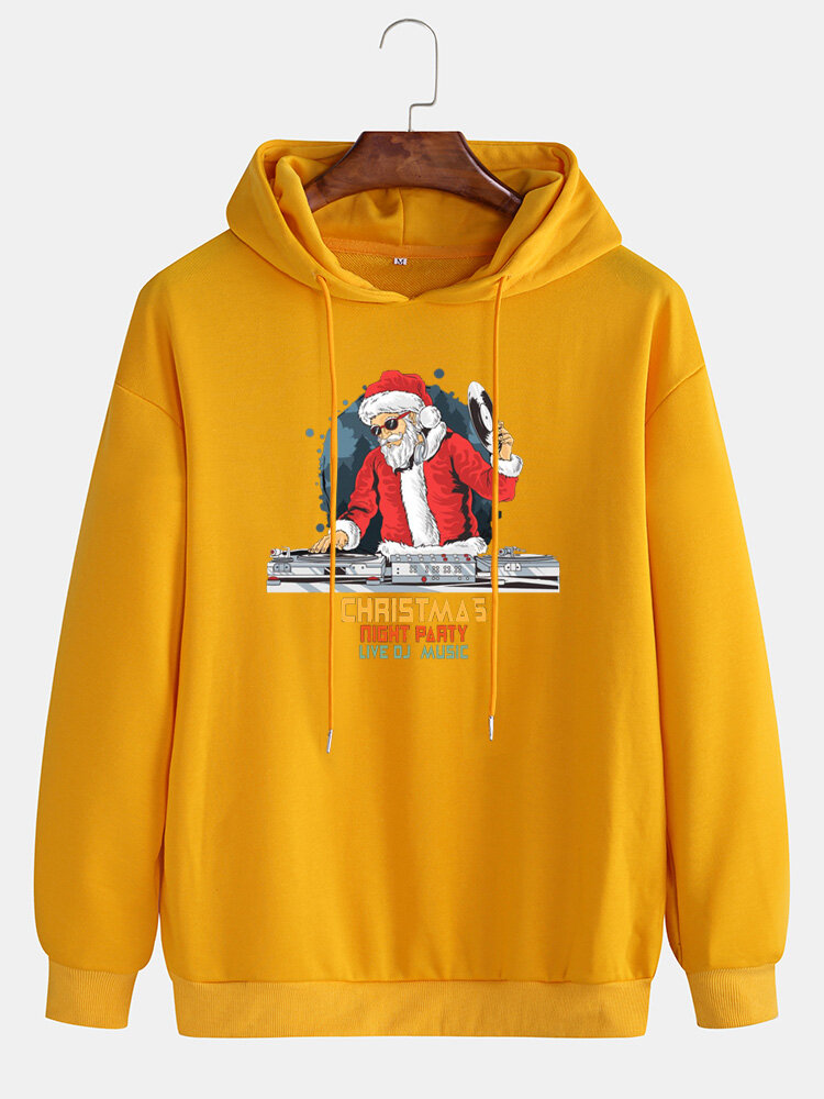 Mens Santa Claus Letter Print Drop Sleeve Drawstring Hoodies – Grey M