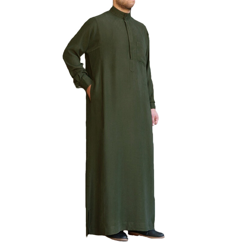 Mens Saudi Style Thobe Dishdash Jubba Arab Robe Islamic Clothing Long Maxi Dress Tops – S Navy