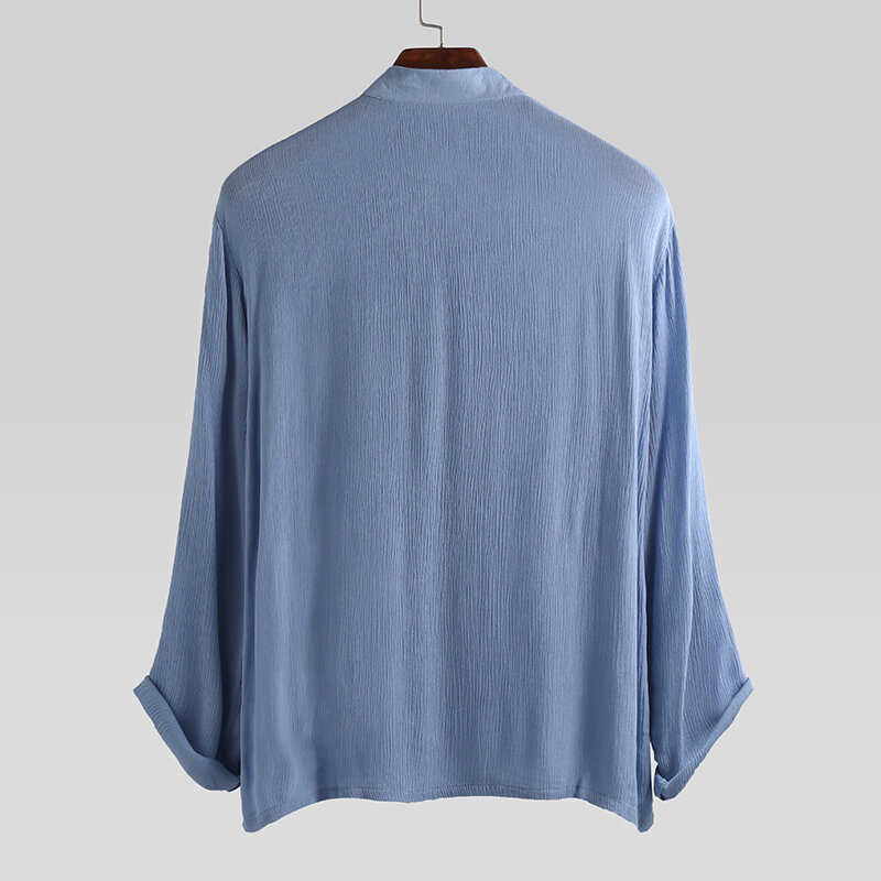 Men’s Shirts Cotton Linen Casual Slim Fit Chest Pockets Collar Pullover Tops Tees – M Blue