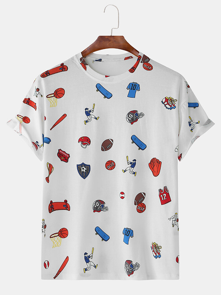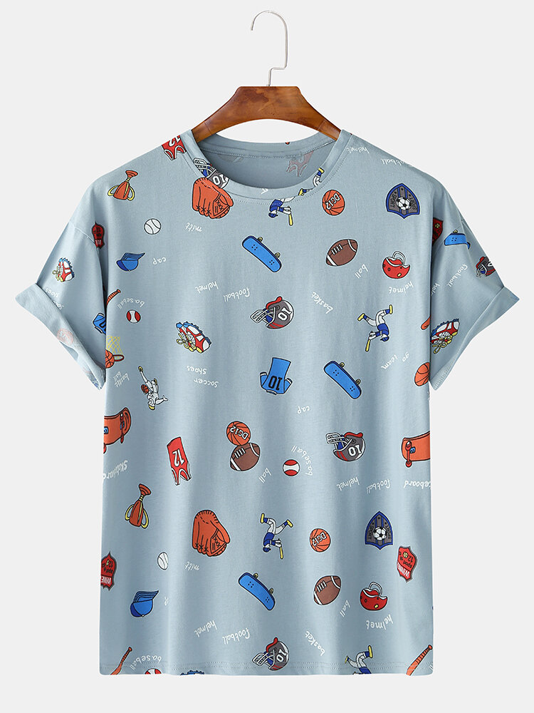Mens Short-Sleeved Loose New Funny Cartoon Print T-Shirts – Yellow M