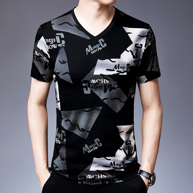 Men’s Short-sleeved V-neck Cotton Printed Cool T-shirt – 175/XL 18889 red
