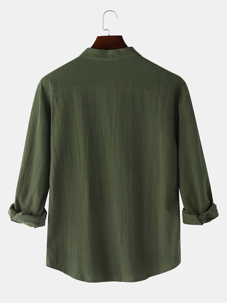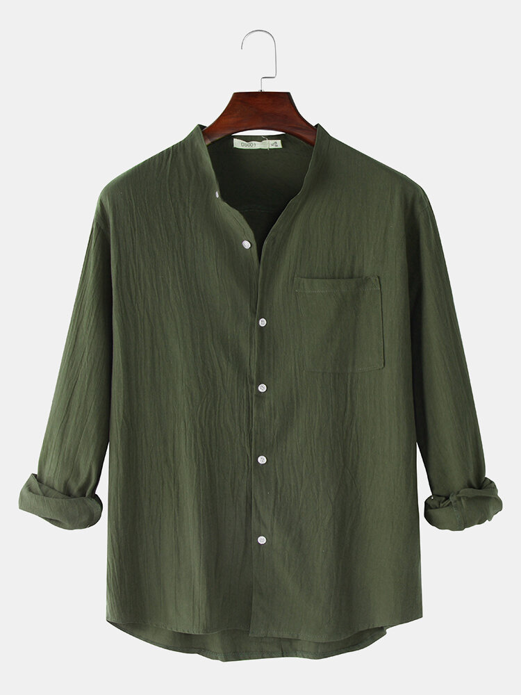 Decoration:PocketFit Type:Regular FitMaterial:FlaxNeckline:Stand CollarPattern Type:SolidScene:Leisure,Home,CasualSeason:Spring,Summer,AutumnSize:XXXL,XXL,L,S,XL,MSleeve:Long SleeveStyle:Vintage,Casual