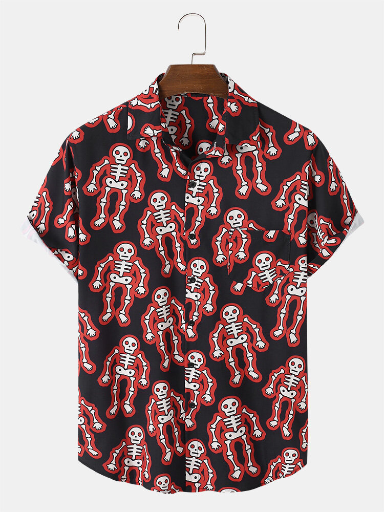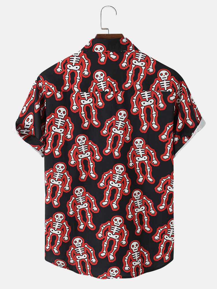 Mens Skeleton Cartoon Casual Shirts – Black M