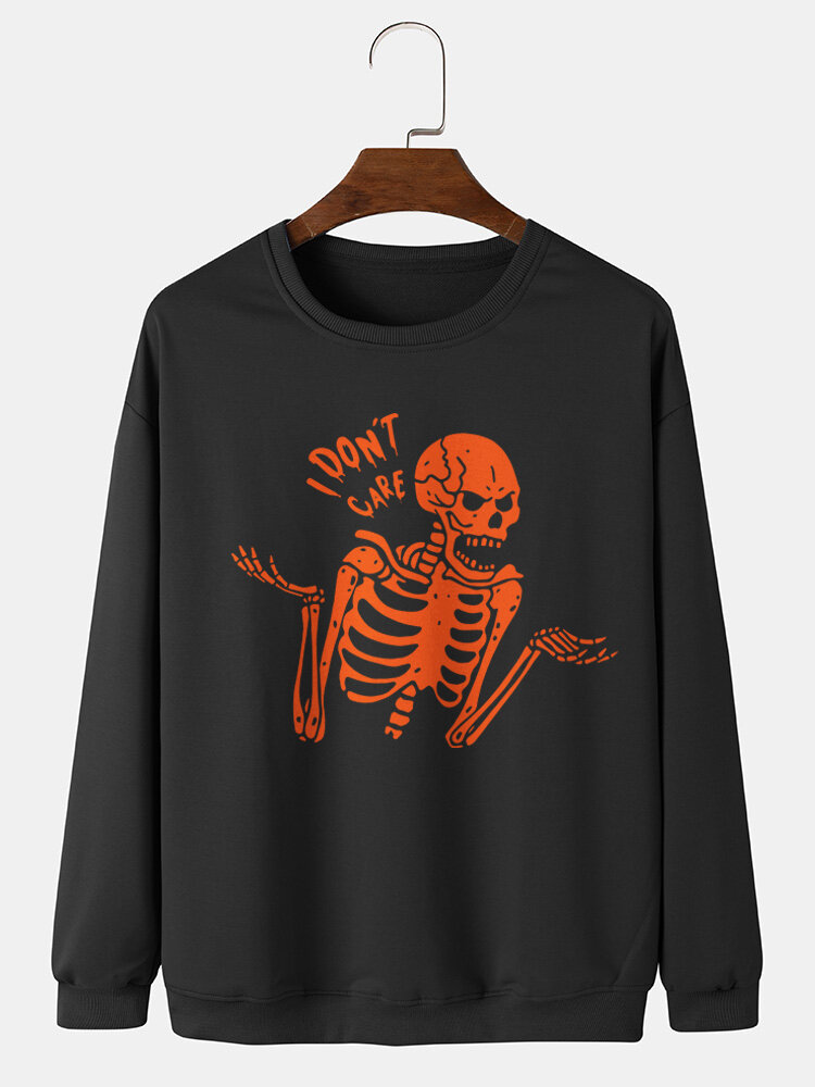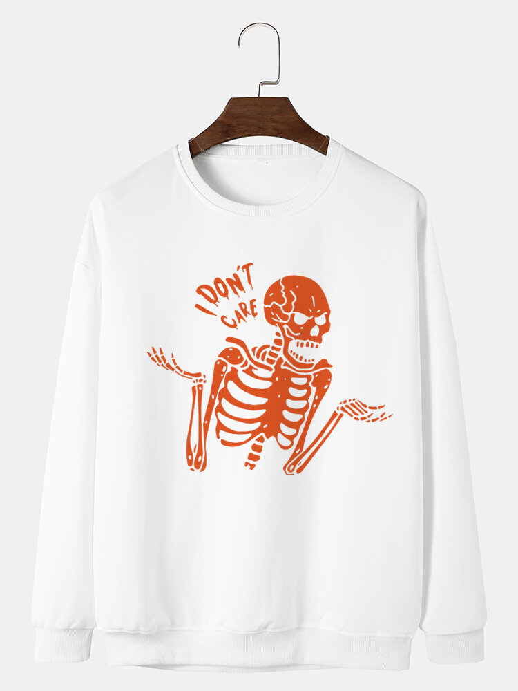 Mens Skeleton Cartoon Casual Sweatshirt – White L
