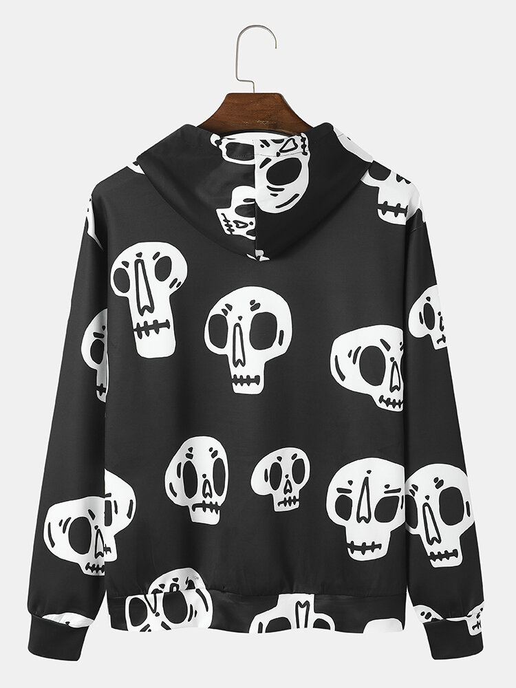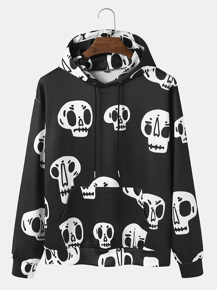 Mens Sketelon Cartoon Drawstring Casual Hoodies – Black L