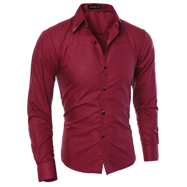 Mens Slim fit Pure Color S-3XL Long-sleeved Gingham Shirts – S White