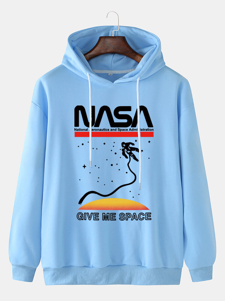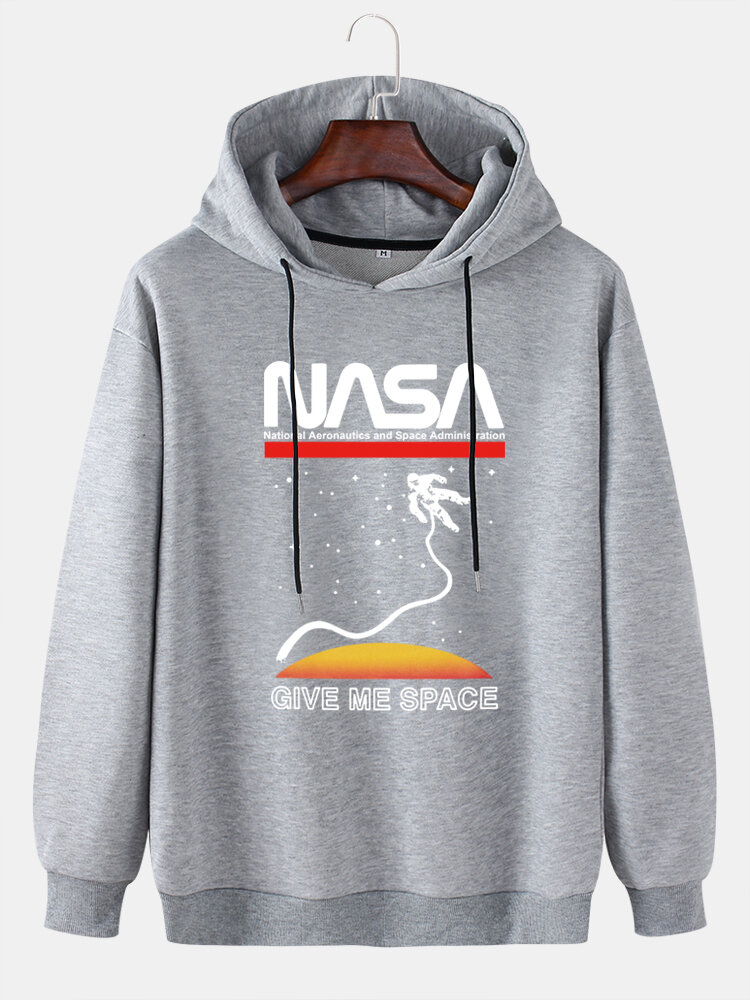 Mens Slogan Print Pattern Long Sleev Casual Drawstring Hoodies – Grey L