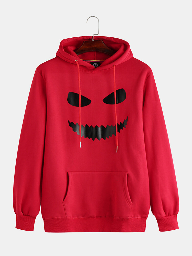 Mens Smile Printing Hooded Overheand Sweats – S Red