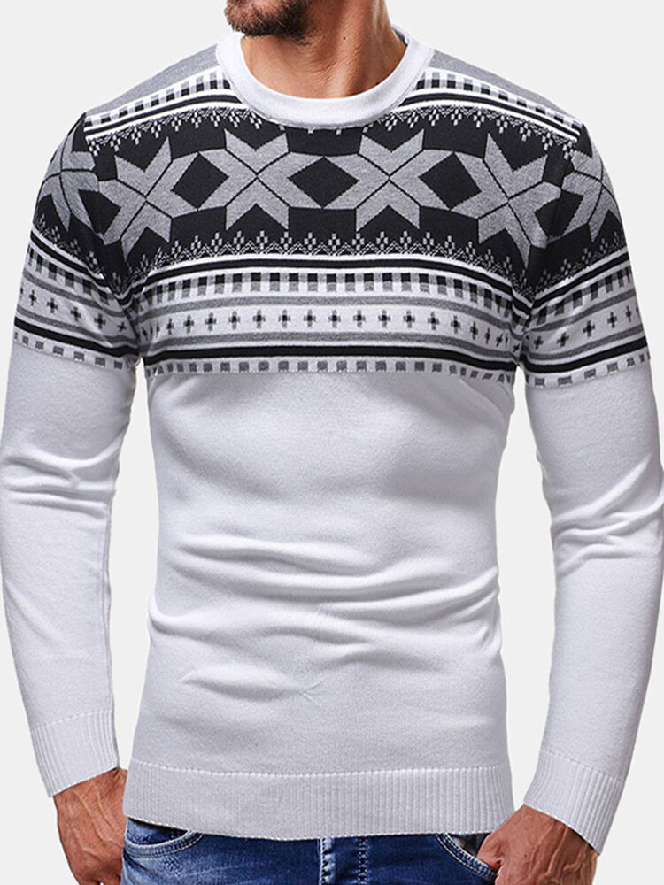 Men’s Snowflake Printing Patchwork Sweaters – L White