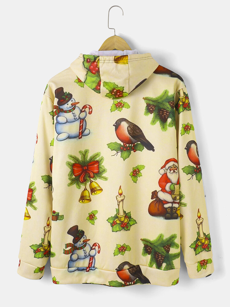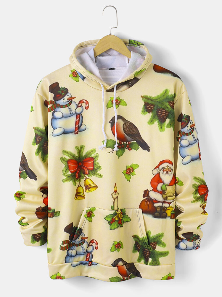 Mens Snowman Print Casual Drawstring Hoodies With Pouch Pocket – Beige XL