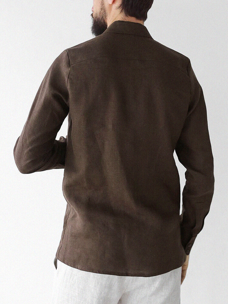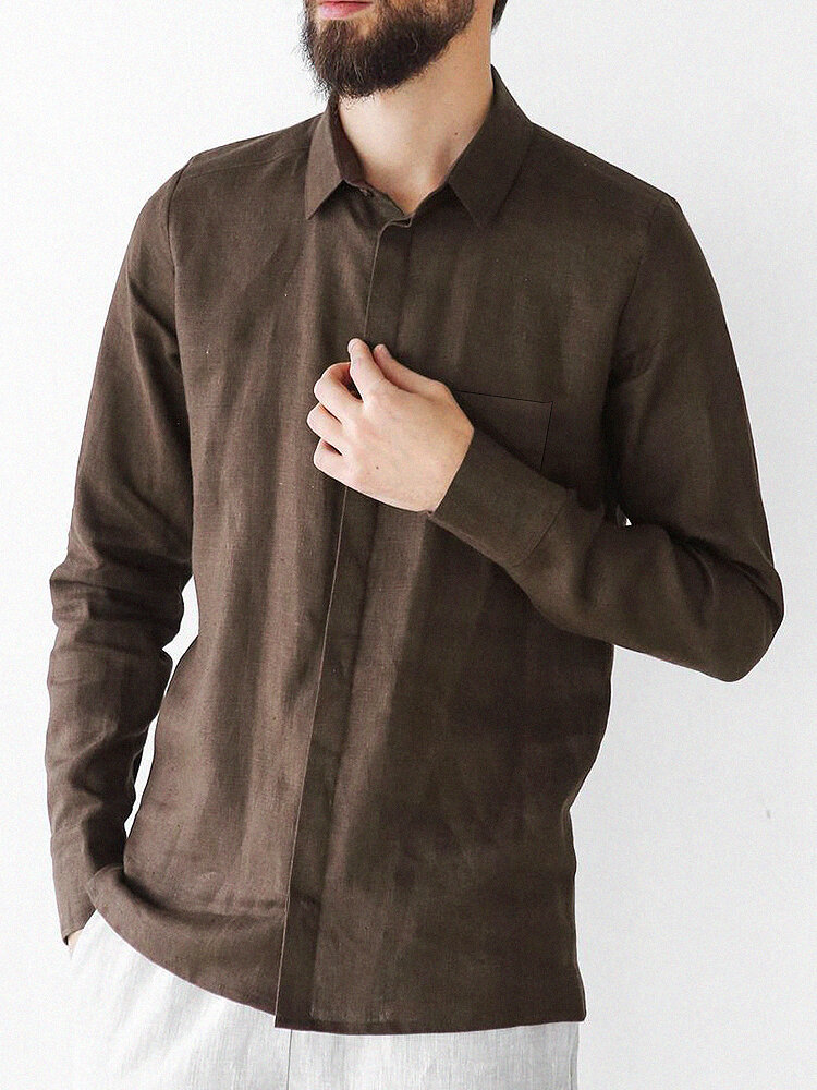 Brand:ChArmkpRDecoration:PocketFit Type:Regular FitMaterial:CottonNeckline:LapelPattern Type:SolidScene:Leisure,Home,Business,CasualSeason:Spring,AutumnSize:XXL,L,S,XL,MSleeve:Long SleeveStyle:Vintage,CasualThickness:Regular