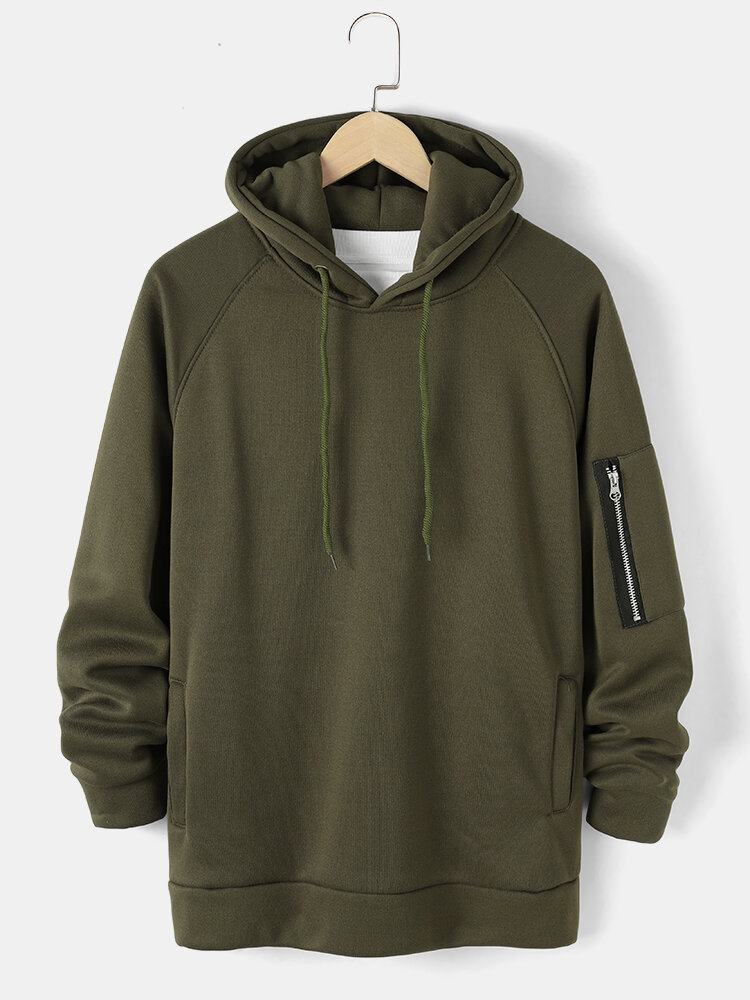 Mens Solid Color Basic Style Zipper Sleeve Pocket Detail Casual Hoodie – S Dark Grey