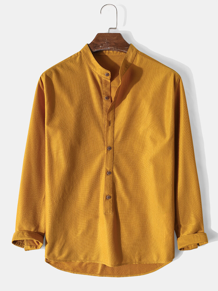 Brand:ChArmkpRDecoration:ButtonFit Type:Regular FitMaterial:PolyesterNeckline:Henley CollarPattern Type:SolidScene:Leisure,CasualSeason:Spring,AutumnSize:XXL,L,XL,S,MSleeve:Long SleeveStyle:CasualThickness:Regular