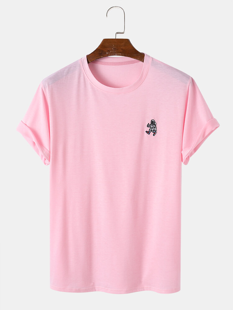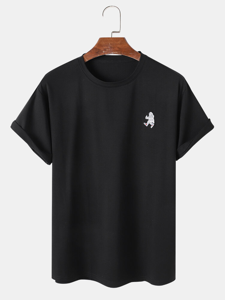 Mens Solid Color Cartoon Astronaut Pattern 100% Cotton T-Shirt – Black S