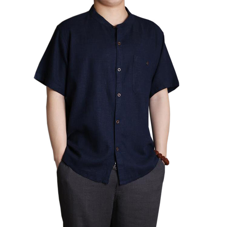 Brand Name: TWO-SIDEDSleeve Length: ShirtsItem Type: ShirtsPattern Type: Solid ColorGender: MenFit Type: LooseStyle: CasualThickness: RegularCollar: O NeckSeason: SummerMaterial: CottonColor: Dark Blue, Black, Light Gray, Light GreenCuff Type: Straight SleevesOccasion: Leisure