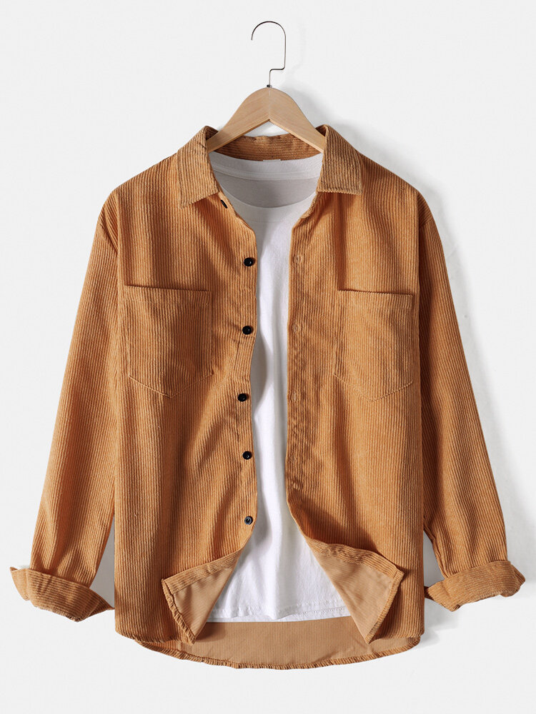 Description:Decoration:PocketFit Type:Regular FitMaterial:Cotton,CorduroyNeckline:LapelPattern Type:SolidScene:Leisure,Home,CasualSeason:Spring,Autumn,WinterSize:XXL,L,S,XL,MSleeve:Long SleeveStyle:Casual