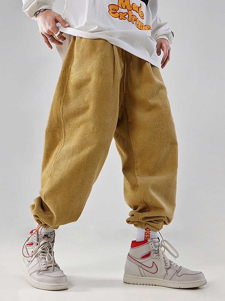 Mens Solid Color Corduroy Texture Jogger Pants With Pocket – Yellow S