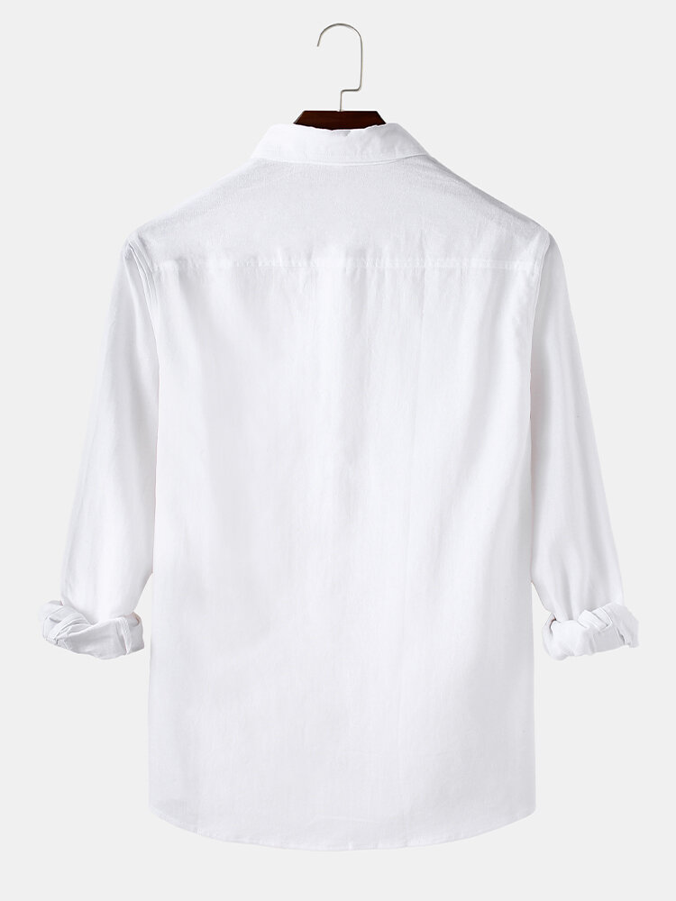 Mens Solid Color Cotton Business Casual Long Sleeve Shirts With Pocket – White S