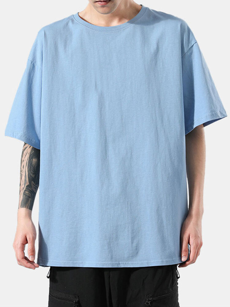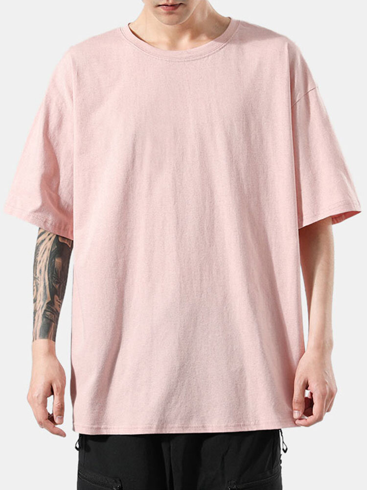 Fit Type:Loose FitMaterial:CottonNeckline:Round NeckPattern Type:SolidScene:Leisure,CasualSeason:Spring,SummerSize:M,L,S,XLSleeve:Short SleeveStyle:Casual
